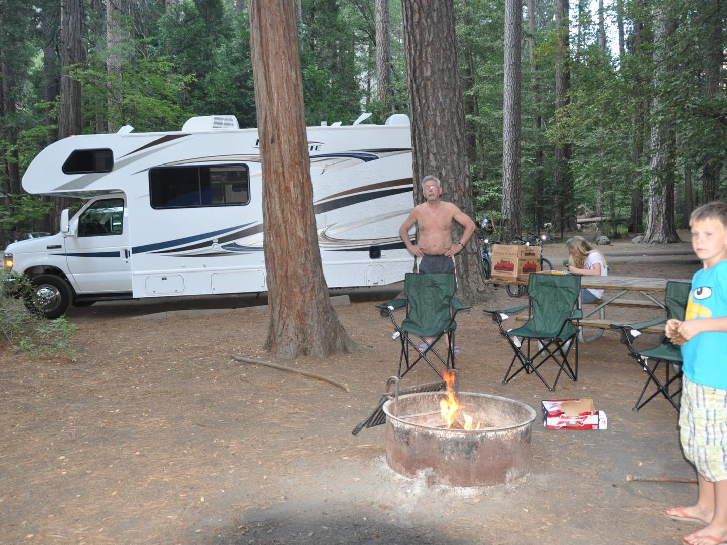 Natasha en Misha zijn toen nog even gaan zwemmen in hetzelfde riviertje dat ook langs de camping loopt. Dit i.p.v. een douche en intussen heb ik het vuur aangestoken in een speciale stalen bak. Inmiddels werd het donker en konden we gezellig zittend rond het vuur heerlijke worstjes bakken. En plannen maken voor morgen. En wat we tot zover gezien hebben van het park beloofd het ontzettend veel voor morgen!!!!