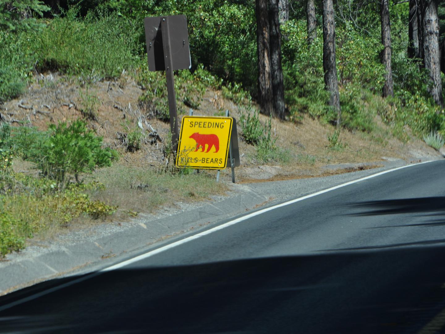 Na de nodige inkopen op naar Yosemite. Eerst via een rustige en wat saaie weg maar allengs gingen we steeds meer stijgen en slingeren en werd de omgeving steeds mooier. Wat een prachtige natuur! De weg werd zo stijl dat we voor een tijdje zelfs de airconditioning van de auto af moesten zetten om wat meer power te hebben!